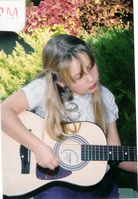Soup and music warm the soul. Aidan, almost eight, playing guitar during Open House at Plantation Pottery.