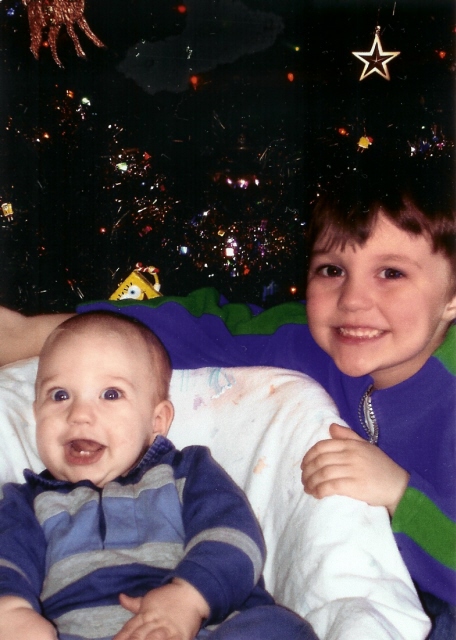 Evan, five months, and brother Trenton, 4 3/4 years old, are ready for Christmas 2005.