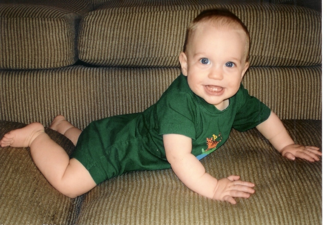 “Don’t pinch me I’m wearing green,” Evan James, 8 months old.
