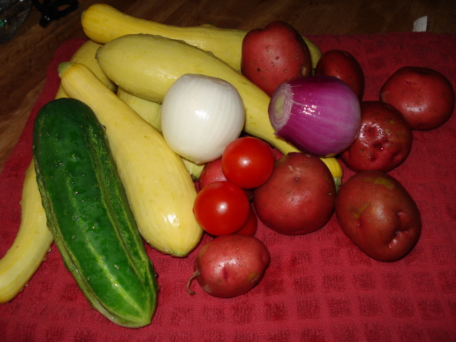 Salsa ready fresh tomatoes and onions from Misty Michelle’s garden.